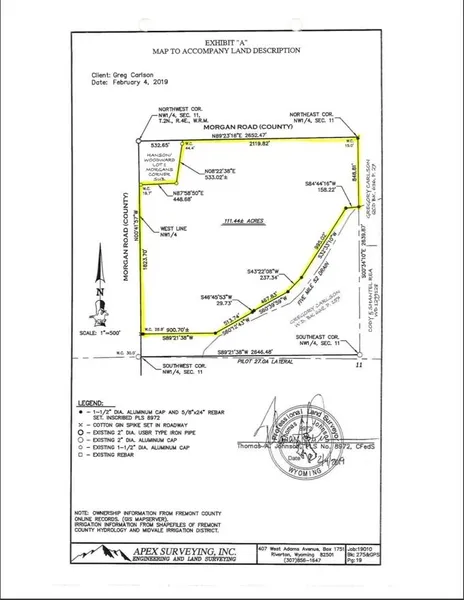 Excellent quality farmland located approx. 10 Miles north of Riverton, Wy. No improvements. Live water year-round from Midvale ditch. Bordered on north and west by Morgan Rd. Current crops include alfalfa, corn, barley and native grass. Good livestock shelter.