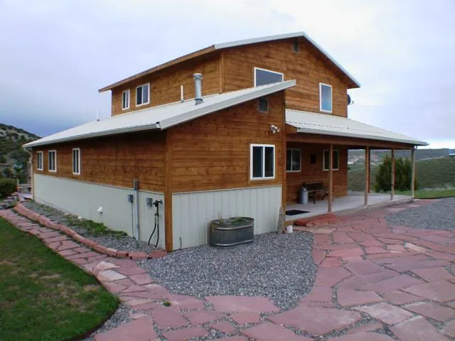 Both levels of living have bedrooms and full baths for all generational living. Acid washed floors with radiant heat, two story vaulted living room captures sunlight. Chef’s delight kitchen with stainless steel appliances, counters, workspaces, gas stove. Stunning stainless steel walk in shower in main bath embellished with acrylic block and lovely wood details. Upper level bathroom has tiled detailing & windows. Front and back porches to sit leisurely and look at the spacious outdoors. Two car garage with an extended workshop. Guest house above garage is fully complete with kitchen bedroom, living room, bath…it’s all here and at an affordable price.