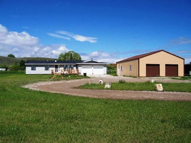 This 3 bedroom, 1 3/4 bath home offers a great floor plan with 2 dining areas, large laundry room, pellet stove, master suite with a bath. Water is supplied to the house by two cisterns, a well on the property and irrigation water is available for the 2.5 acres of land. Great views of the Wind River Mountains. A 2 car garage with tall garage doors for trucks and SUV's, a large 30x40 Shop and a circular driveway. Great home, great value!