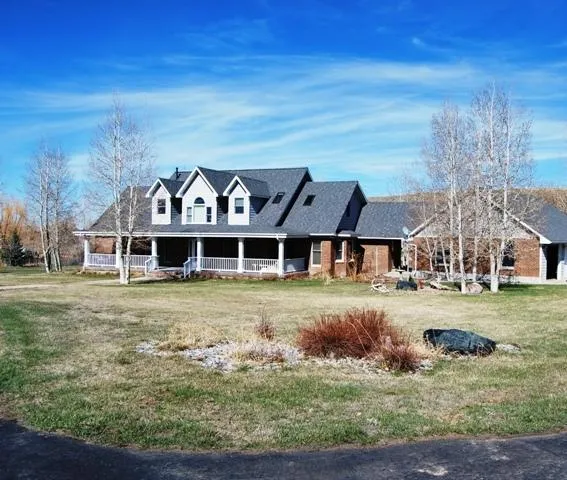 Masterful Georgian style home on 6.62 acres with ponds, boat dock and views galore-all on the very edge of town! Step-down Master Bedroom has its own door to the deck. Inside the suite includes both a tiled shower, large garden tub, ample walk in organized master closet. The kitchen and great room provide an open but cozy space for living and entertaining. Contemporary gas rock fireplace plus a tradition wood stove means energy efficiency and style. Kitchen has slate flooring, plenty of cabinet & counter space including a breakfast bar. Formal dining room adjoins. Hardwood floors, vaulted ceilings, open balcony from upper floor. Spacious 3 car garage with connected breezeway to home. The real showcase here is the acreage with spectacular views to the mountains and the private ponds with fishing dock and waterfowl-the best of town and country.
