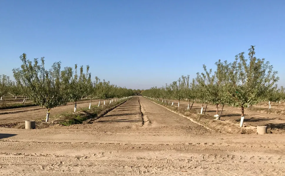 Almond and peach plantings, with home in great location, on the northeast corner of Clovis and Central Avenues. One quarter mile of Clovis Avenue frontage, and less than 1 mile from the City of Fresno Sphere of Influence.