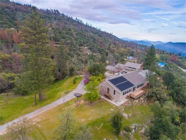 On a clear day,see the Coastal Range! Unmatched Custom built home has 23+ acres on the Ridge just below Meadow Lakes. Only 35 minutes to River Park or Old Town Clovis. Big island kitchen, pool room joins the master suite. A large sun room, upstairs a game room boast a handmade wooden slab at the wet bar, with a fireplace. Newer composite decks are maintenance free! INDOOR Solar POOL, off master is handicap accessible. Pool, spa and Sauna housed in a windowed, vaulted, spectacular knotty pine tongue and groove room. You see the city lights at night and beautiful scenery from Table Mountain to the Coast Ranges from this property! Decking is all the way around. Providing unmatched vistas, and cool canyon breezes. Driving in there's a very private entry with a circle drive; bordered by a giant boulder, oak trees, mature landscaping, a carport, a large workshop, and the basement doubles as a vintage wine cellar. Newer vinyl windows. Only minutes from Shaver Lake