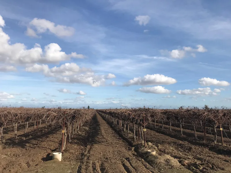 Spacing is 7 ft. 12 ft. on the +/-39.38 acre parcel and 6 ft. x 12 ft. on the +/-20.24 acre parcel. All V-trellis at 56 in. to 60 in. wide.