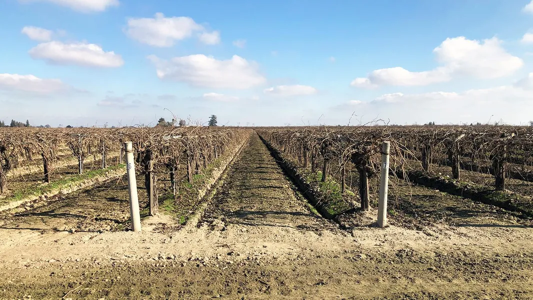 A mature Thompson Seedless vineyard historically farmed for raisins.