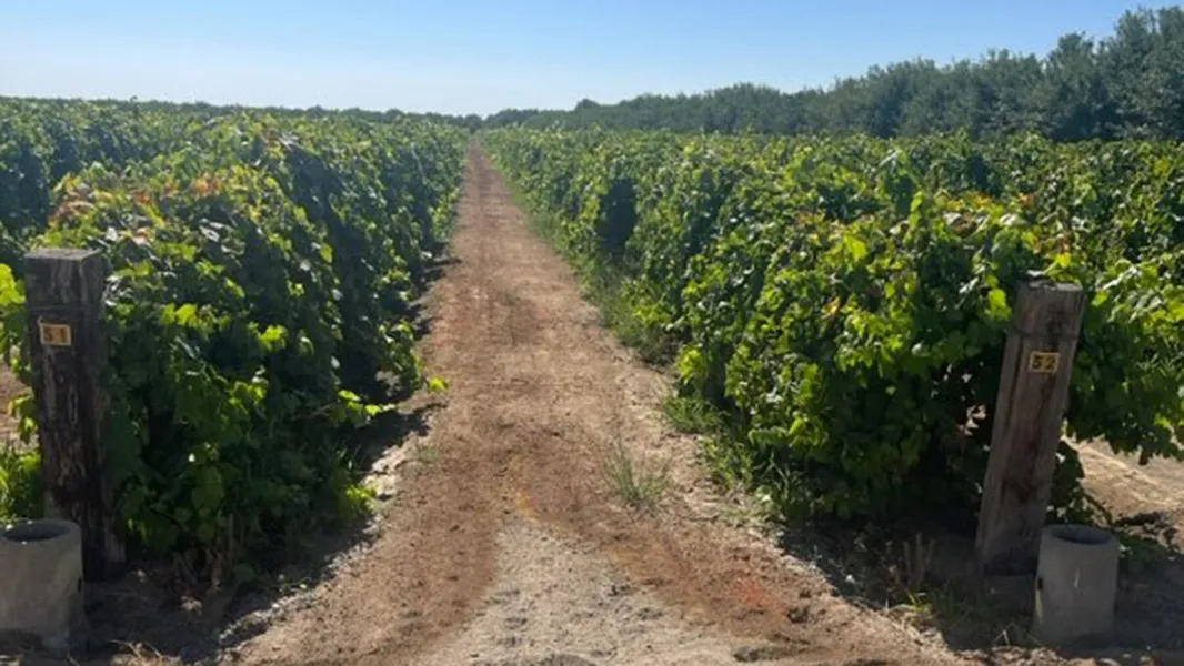 The property consists of a mature Thompson Seedless vineyard with 2 wire trellis, steel stakes, and wood end posts.
