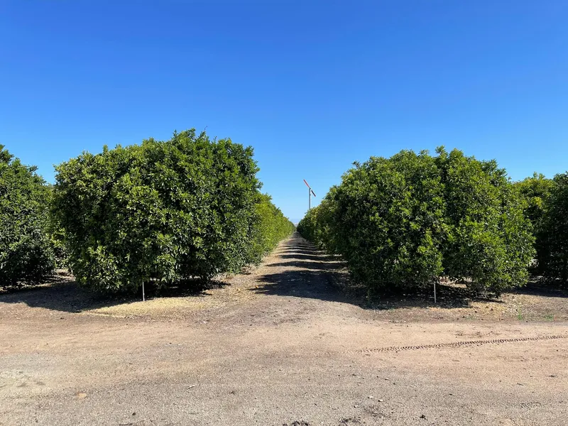 Citrus plantings with a rental home approximately 1,184 sq. ft., 2 bedrooms, 1.75 baths, built in 1968. There is a wood barn that can be used for equipment storage. A chain link fence exists on a portion of the property along Weldon Avenue.