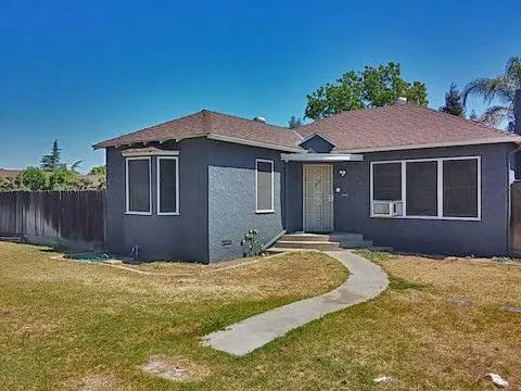 The home is located on the corner of Peach and Freemont just south of Herndon for easy access to shopping and freeways. The home was built in 1941 but has been nicely remodeled with a new kitchen, wood floors and carpet, tile showers, and exterior paint. The living room has a nice brick fireplace. It is 1,150sqft w/ 3br2ba and is in nice condition.