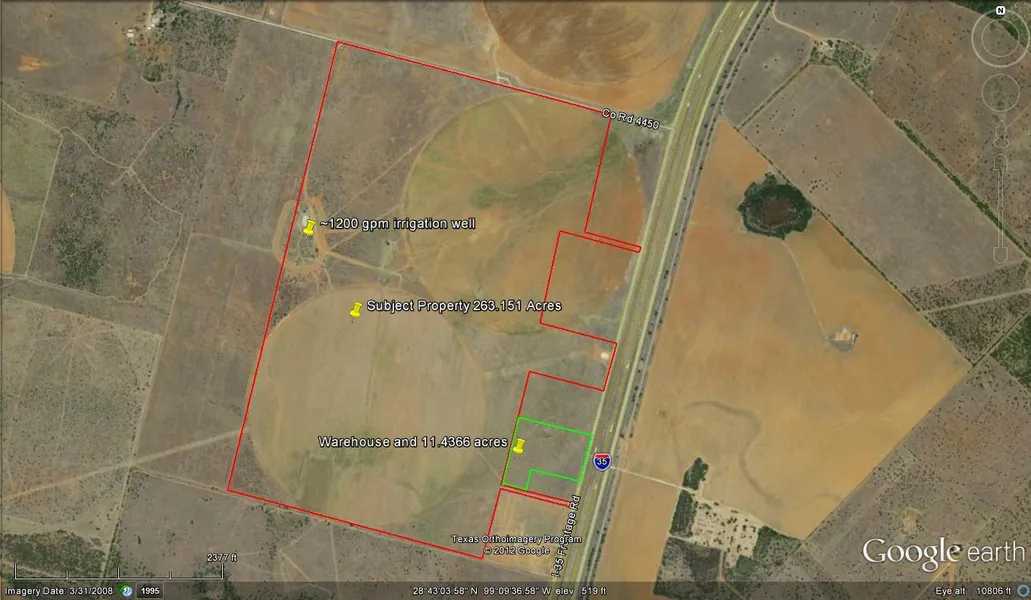There is 2,800 feet of frontage on the south side of Charolais Rd. and I35 access, the seller will divide into smaller tracts.