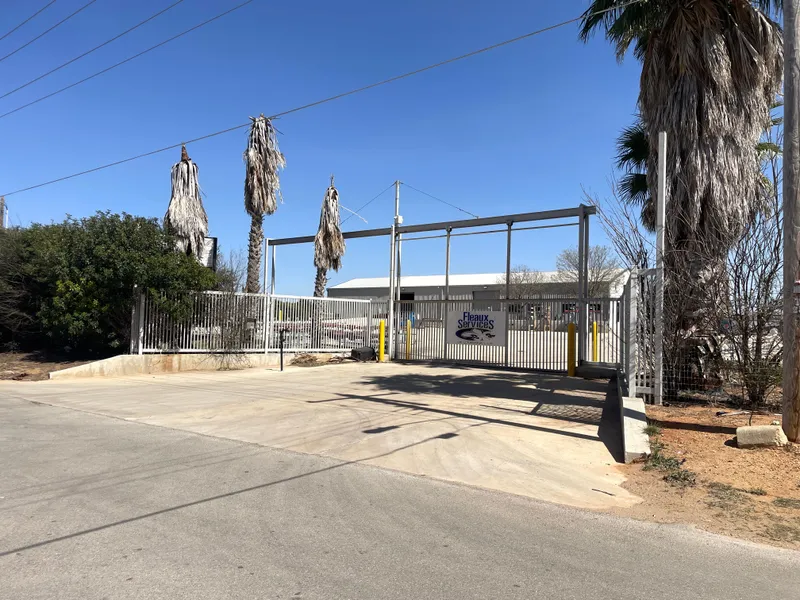 A remote gate grants access to the property via N Cherry Street in downtown Pearsall.