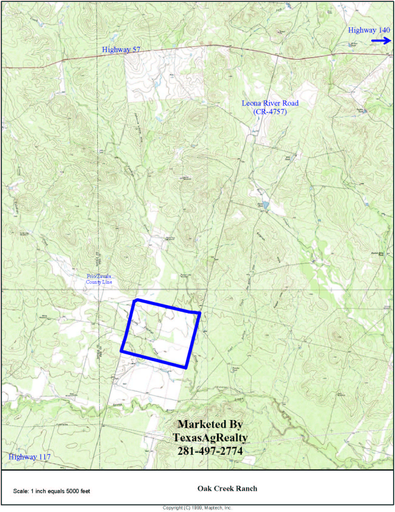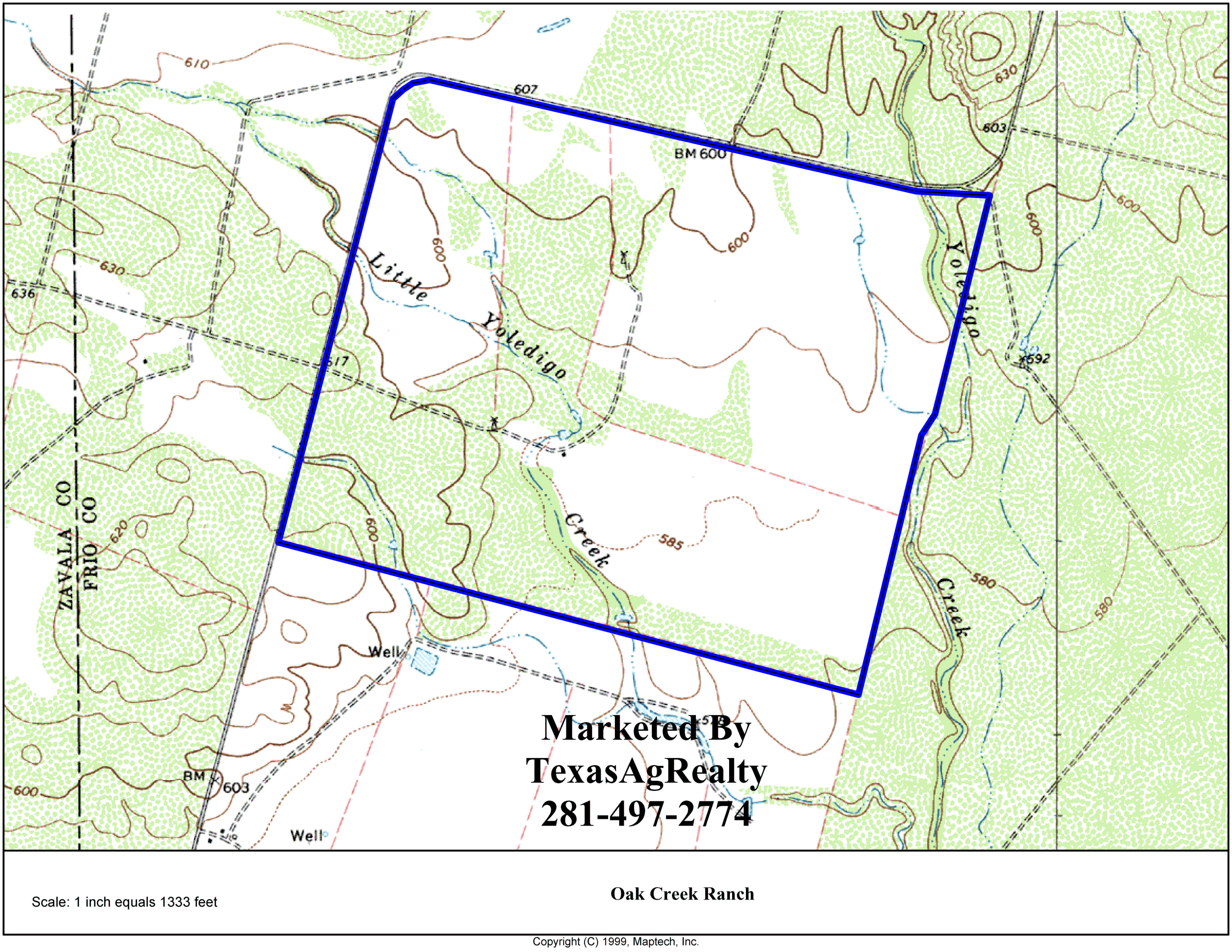 This is a 966 acre high-fenced managed game ranch with a tremendous deer herd including trophy whitetails and exotics. It is crossed by a seasonal creek and it has dense South Texas brush which produces trophy deer. The ranch has a 5 bedroom lodge that has vaulted ceilings, wood wall paneling, wet bar, stone fireplace, and tile flooring. The ranch also has a second 2 bedroom hunters cabin. Other notable buildings include a metal equipment shed and a three-sided metal pole barn for equipment storage. The equipment shed includes an all steel construction with a central concrete apron and a walk-in cooler. Oak Creek ranch is served with 7 water wells of which 4 have electric submersible pumps, two are powered with wind mills, and one is powered by a solar panel. The ranch is completely enclosed with high game fence and it has several food plots including two plots that are irrigated. It has several stock ponds scattered throughout the ranch. The perimeter of the ranch is enclosed with high game fence and the interior includes 2 high fenced holding pens.