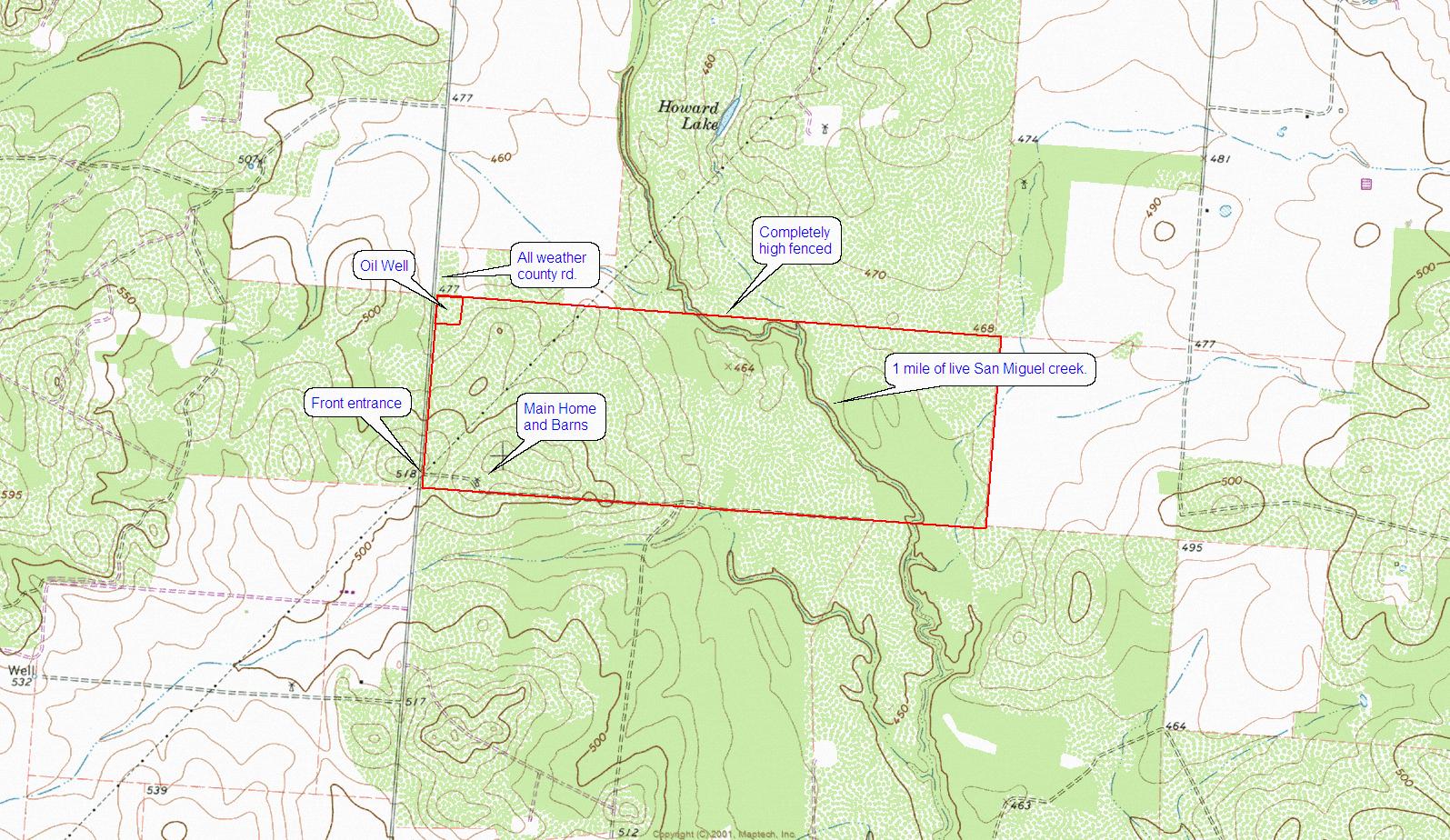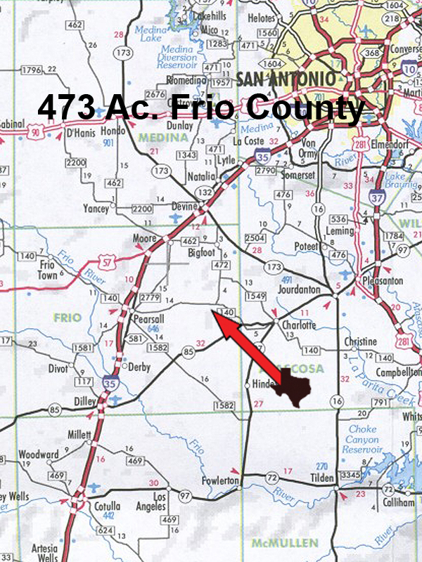 Location: This ranch is located in Frio County and is approximately a 1 hour commute from San Antonio and less than 20 minutes from Pearsall and Devine. Nestled next to 2 other large ranches of which one is 10,000 acres and the other is 1,800 acres, the San Miguel Ranch is secluded but conveniently located.
