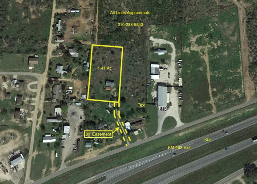 lly Improved 1.4 Acre Lot. Great for mobile home or new homestead. No restrictions. Septic, water, electric on site. Located & I-35 and FM 462right off the I-35 Access Rd. Bring your mobile home, RV, Ect.