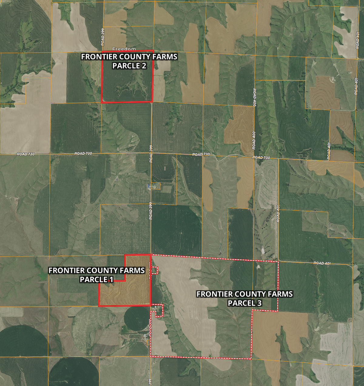 Here is an opportunity to bid and buy 3 parcels of non-irrigated cropland and pasture in southeastern Frontier County. Parcels are located in a very competitive farming community with solid grain marketing opportunities. Parcels will sold separately and will not be combined.