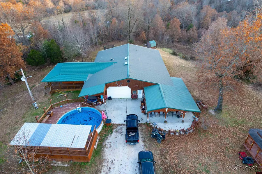Unique property with endless opportunities. A 5,000+ sq ft barn dominium containing two separate single-family homes is the centerpiece. There is a 4 bedroom/2.5 bath, 1800 sq ft home on one side, and a 3 bedroom/2 bath 1,831 sq ft home on the other. Both are tastefully finished with a rustic farm design. Each unit has its own separate septic systems and HVAC systems. There is live water from Mill Creek as well as 4 ponds. There is a breezeway between the units that has its own kitchenette and makes for a great gathering area. Enjoy the hilltop views from the 24'above ground pool. 62-acre m/l, approx. 20 acres is in pasture and is fenced and cross fenced and contain automatic waterers. Several nice bucks have with been taken off of the property. There is a 2,000 sq ft shop that houses a dog kennel, insulated tack room, and a 9k car lift. Numerous outbuildings and lean To's on the place. ...