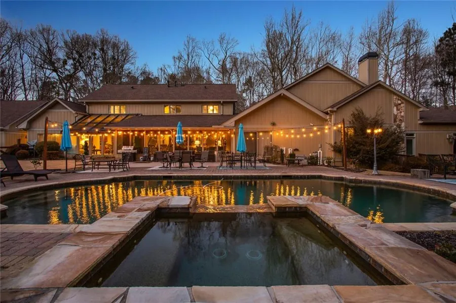 One of the most Unique properties in Alpharetta/Johns Creek. This property has the ability to provide multipe lifestyes. Equestrian living, entertaining and your own private Resort. Surrounded by nature, including a creek, muture trees in the front and professional landscaping in the backyard with a salt water pool and spa. The moment you walk in the house you feel the warmth and love of this home. The private 10 acre lot has so much potential, multiple areas of fencing with a professional grade horse riding arena. Eight stall barn with tack room. Hay and supply barn steps away. The inside of this home has endless natural light with two story windows in Great room and windows through out this beautiful home. Gorgeous kitchen with glorious sunlit breakfast room, plus a view of your garden and pool. The Great room with it's two story view, double size fireplace and wet bar is peferct for e...