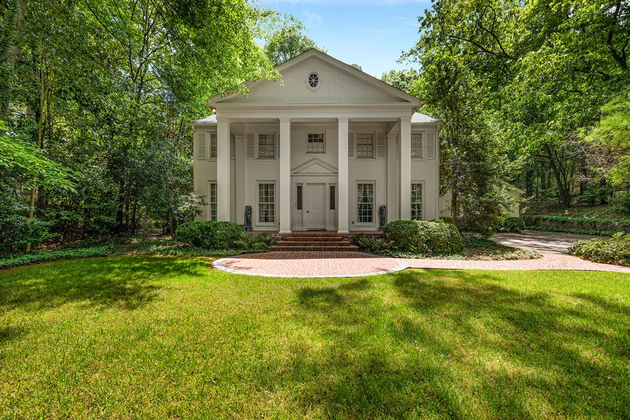 Stately estate home refreshed and ready. This antebellum makes perfect use of just over one acre lot and includes inviting pool with cabana. Stunning and impressive details abound from the carved front doorknob, light flooded kitchen, and fantastic layout. This is coveted flat section of Nancy Creek between West Wesley and Ridgewood. Main floor is an entertainers dream with wide foyer, dining room, living room, office, den (can double as bedroom with full bath adjacent). Light filled gourmet eat in kitchen with vaulted ceiling. Upstairs is a three bedroom, two bathroom plan. Immensely spacious finished daylight basement with interior entry, exterior entry, full bathroom, separate bedroom and plenty of play space. This will not last long. Call today!