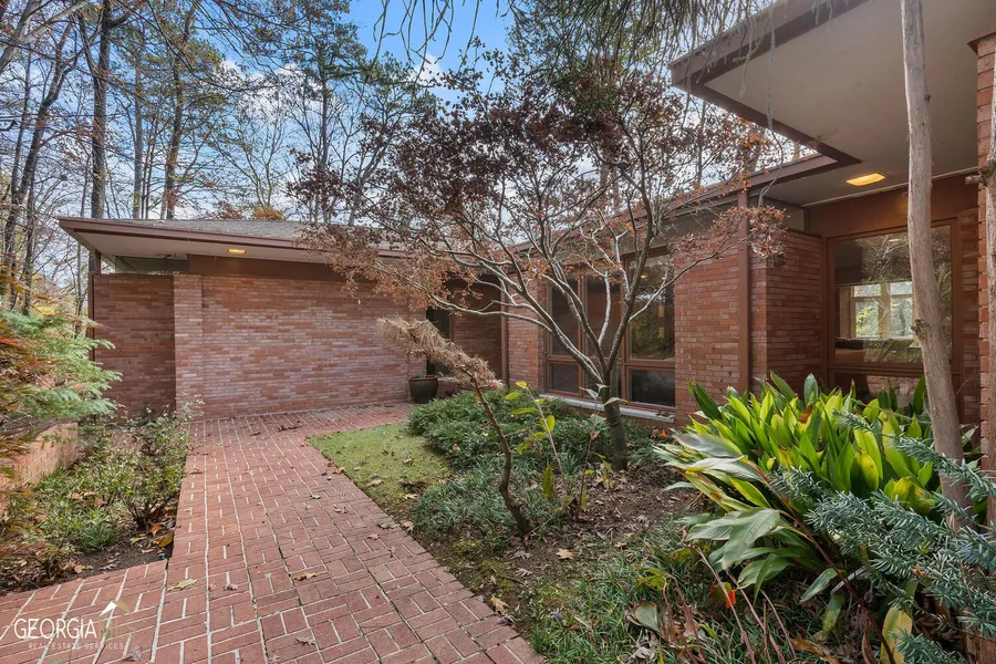 Imagine finding the rarest, larger than most and nearly original mid century modern architecturally significant home in Buckhead. Located in the Kingswood neighborhood right off of West Paces Ferry and on one private acre. Architect Bill Finch designed this home in 1958 situated perfectly on the property. Mr. Finch and his architectural firm, Finch, Alexander, Barnes, Rothschild and Paschal is best known for the design of Coca-Cola's world headquarters. Their specialty was corporate headquarters and sports stadiums. Perhaps that explains the scale of this residence, refreshingly large with at least 10' ceilings. Central to the house are large open spaces with rare architecturally designed ceilings with 14' ceiling with clear story windows that maximize the natural lighting and open to expansive decks that connect off the back of the house. Most rooms have doors that open to patios. Hardwood floors throughout and large scale rooms create an incredible living environment with most rooms that open to outdoor spaces. In 2000, architect Peter Block restored the house for the current owner, primarily the kitchen and the primary bedroom suite which has an oversized dressing room, a vaulted Pecky cypress ceiling in the bedroom, sitting room and double doors that open to a private patio. The bathroom has heated stone floors, large shower and separate tub. The kitchen has cypress cabinets and tumbled travertine heated flooring and features a large walk in pantry. Downstairs is an area for a gym and two large light filled rooms for an additional office or play space. Huge storage rooms. A private walnut study is off by itself on the wing to the primary bedroom suite with views out to the private zen gardens. The meditation/prayer room has ancient wood doors that open to a private patio. Heated stone floors and a dome ceiling that creates the perfect acoustic sound in the room. The guest casita is attached to the residence by the carport and has a bedroom/living room with heated stone floors and a full bath. There is room for a pool and plenty of privacy. Incredible location just minutes from Buckhead, great restaurants and the best schools Atlanta has to offer. This is a rare opportunity to own an incredible mid century modern architecturally designed home. It is 1 of 1 in Atlanta.
