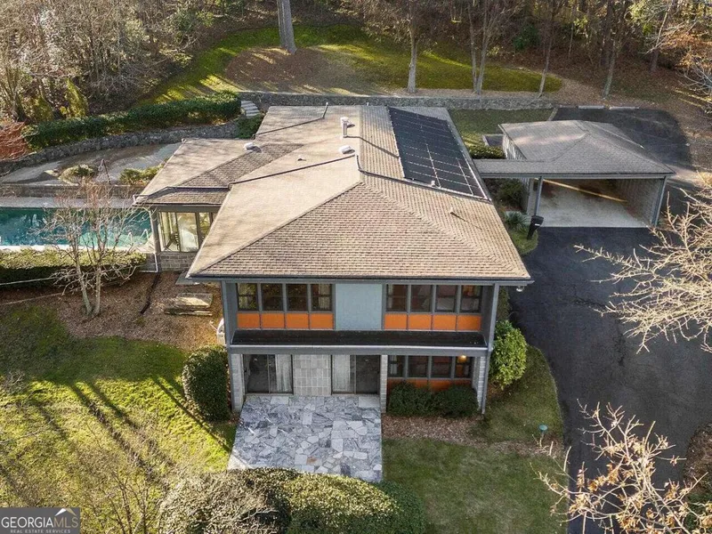 Welcome to this exquisite midcentury modern home nestled on a sprawling 1.06-acre lot in the highly sought-after Chastain Park neighborhood, a true gem that has been meticulously maintained, time capsule with only one owner. Designed by the renowned architect Benjamin Hirsch and constructed in 1957, this property embodies the timeless elegance and iconic style of the midcentury modern era. As you gradually wind up the driveway and approach this remarkable residence, you'll be greeted by its distinct character and charm. The house is strategically positioned, perched atop a gradual hill, offering both a sense of elevation and an expansive yard in the back. The lush landscaping and mature trees provide an added layer of privacy and natural beauty. Central to the house is the walk out private pool, complete with solar heating, providing a serene oasis for relaxation and recreation. The pool area is perfectly complemented by a swanky glassed-in sunroom, affording breathtaking views of the pool and its diving board, creating a seamless indoor-outdoor living experience. The main level of the home boasts three well-appointed bedrooms, with the primary bedroom thoughtfully situated to overlook the pool area, allowing you to wake up to a tranquil and picturesque view every morning. The main living spaces are designed with an open concept, with an emphasis on clean lines, large windows, and a harmonious blend of form and function. The daylight finished terrace level with patio, offers lots of entertaining options. Here, you'll find a billiards room, an additional bedroom and bathroom, as well as a two spacious offices, perfect for remote work or creative pursuits. This level seamlessly connects to the outdoor patio and pool area, extending your entertaining possibilities. This home also boasts the modern convenience of a generator, ensuring you are well-prepared for any unexpected power outages. Meticulously maintained and in excellent condition, this midcentury modern masterpiece is a rare find in Chastain Park and minutes to Buckhead. In summary, this one-of-a-kind midcentury modern home, designed by Benjamin Hirsch in 1957 and lovingly preserved and offers an unparalleled living experience in one of Atlanta's most desirable neighborhoods. With its private pool, open living room and sunroom, it's a testament to the enduring appeal of midcentury modern architecture. Don't miss the opportunity to make this iconic property your own and become the steward of this Atlanta treasure.