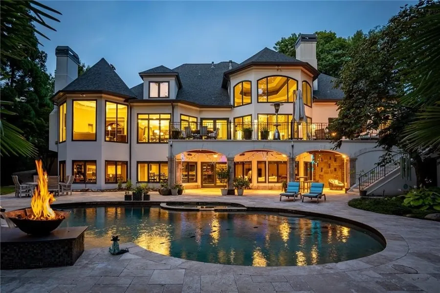 YOUR DREAM HOME AWAITS! Back on the market through no fault of the seller or home—seize this rare opportunity to make this stunning luxury property your own! This magnificent one-of-a-kind HARD COAT stucco European-style home offers an incomparable blend of sophistication, luxury, and tranquility. Poised along the 16th fairway, this unparalleled GOLF COURSE ESTATE is located in the distinguished Country Club of the South in Johns Creek, Georgia. As you enter through the grand mahogany doors, the two-story foyer adorned with Italian marble welcomes you into a realm of timeless elegance. Impeccable craftsmanship is evident throughout the home, with custom details and recent EXCEPTIONAL UPGRADES IN EXCESS OF $775,000 INCLUDING: new roof, newly replaced stucco and stone exterior, new Pella windows & doors, new garage doors, efficient new hot water heaters, new electrical, fresh paint thruout and new pool systems. The interior exudes grace and warmth, boasting seven newly refurbished fireplaces, high ceilings, and exquisite new chandelier fixtures. The extraordinary chef's kitchen, equipped with new top-of-the-line SubZero, Wolf, and Bosch appliances, serves as the heart of the home. The large island flows beautifully into the eat-in kitchen and adjacent open family room. The oversized two-story great room, bathed in natural light is highlighted with a stunning limestone fireplace. The luxurious primary suite with pool and golf course views features a fireside sitting area, spa-like bath, and His & Hers customized walk-in closet. Upstairs, a spacious and completely REMODELED JUNIOR SUITE awaits, along with three additional en-suite bedrooms, all showcasing large custom closets and storage. The integration of indoor and outdoor spaces is effortless with fairway views and a SALTWATER POOL surrounded by a sweeping deck accented with captivating fire bowls and water features. The gorgeous landscaped backyard with wrought iron fencing, provides a private haven for relaxation, recreation, and entertaining. The expansive terrace level boasting vein-cut travertine floors offers an additional private bedroom/bathroom, office, family room with fireplace, media room, game room, exercise room and a golf cart storage area. Accessible from this level are the remarkable park-like outdoor features including a backyard koi pond and expansive shaded patio with a striking stacked stone fireplace for unwinding in the tranquility of this amazing backyard. Every corner of this golf course estate has been thoughtfully and meticulously crafted and updated to exceed the highest standards of luxury living. Welcome home to your oasis in the Country Club of the South!