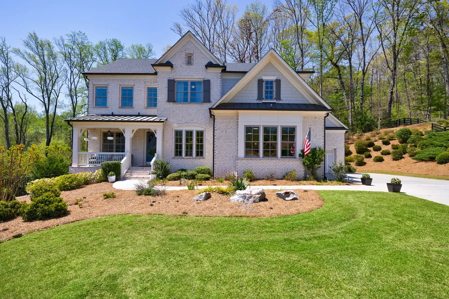 This sprawling Milton estate offers the perfect blend of spacious, functional living and modern flexibility, ideally situated across the road from both Capital City Club Crabapple and Atlanta National Golf Club. Located on a private, one-acre+ cul-de-sac lot in the highly sought-after Woodwinds at New Providence, this property provides nearby access to top-rated schools in the award-winning Fulton school district, including Summit Hill Elementary, Northwestern Middle, and Milton High. Just minutes from vibrant downtown Alpharetta, Avalon, Downtown Roswell, Downtown Woodstock, and Halcyon, it boasts a total of seven bedrooms, five living areas, two kitchens, and three fireplaces, making it ideal for entertaining or multi-generational living. The main floor, featuring ten-foot ceilings, includes a formal dining room, a private home office, a guest suite, a full bathroom, and an eleven-foot ceiling open-concept living room. The chef's kitchen is a highlight, with an oversized Cambria Seagrove quartz countertop island and farmhouse sink, 42-inch plus 18-inch stacked-to-ceiling white cabinetry, a pot filler, KitchenAid appliances, and a walk-in pantry with built-in wood shelves. This flows seamlessly into a bright keeping room with a fireplace, which extends to a rear deck offering serene, wooded views and sunsets. The upper level, with nine-foot ceilings, features a spacious owner's suite with a spa-style bath, a freestanding soaking tub, a colossal shower with dual heads, and a walk-in closet. This level also includes three additional bedrooms, a bonus room, and a laundry room with a sink. The fully finished walkout basement boasts nine-foot ceilings, whitewashed wood ceilings, a cozy wine cellar, two full bedrooms, a custom kitchen/dining area with granite countertops, and a large theater room with elegant millwork. The property provides three garage spaces in total—an oversized two-car garage and a one-car garage—with ample parking on the 200-foot driveway. Throughout the home, you'll find hand-scraped hickory hardwood floors on the main and upper levels, with carpet in the main guest suite and non-master upper bedrooms. Other features include insulated windows, abundant storage, and a range of amenities such as three fireplaces, a deck, quartz and granite countertops, tile and hardwood flooring, walk-in closets, gardens, a media room/home theater, an underground lawn sprinkler, and an included washer and dryer. The professionally landscaped property boasts a large Bermuda grass front lawn, and the backyard adjoins heavily wooded terrain, offering peaceful seclusion and frequented by wildlife. (Please note: Photo 71 is a conceptual rendering only; a city pool permit is necessary for a pool). Schedule a showing today to experience this exceptional home!