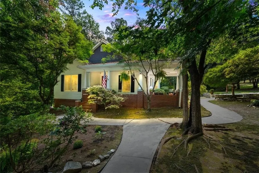 This extraordinary home is cradled within seven terraced-levels of botanical paradise that cascade over 12.64 acres of manicured grounds, walking trails, meadows, horse runs, and parklike vistas. Each window of the home frames a serene, calendar-worthy view of verdant landscape. Over 20 Japanese maples of varied species grace the property, along with tulip trees, a mulberry tree, ancient elms, a grove of tree-sized camelia bushes, abundant magnolia, and pine. In spring, plentiful Azalea bushes burst in vibrant shades of coral, white, fuscia, and red, and purple rhododendron spot the terrain. Japanese Lantern and a corridor of whimsical cherry blossoms gracefully umbrella a long walkway to both a pole barn to the north and to the south, a meadow with an alluring grassy field complete with firepit, blueberry bushes, and an enchanting, albeit uninhabitable cabin (up for extensive repair or a new build of your choice with all utilities already in place). The long winding gravel driveway finds the house hidden completely from the street affording unparalled privacy with no neighbors in sight and yet all basic needs are literally just 2 minutes away with the Atlanta International Airport, accessible in 25 minutes. An inviting brick veranda envelopes the front of this stately Arts and Crafts home and provides a shady retreat for a mindful morning java or entertaining guests. An elegant great room with soaring vaulted ceiling and stone fireplace warmly greets you as you enter home. The main level flows conveniently to include an ample primary bedroom with tray ceiling and sliding glass doors that access an L-shaped deck overlooking the yard and field beyond. Additionally, a 4-piece ensuite bath and garden tub with roomy walk-in closet, an updated elegant country kitchen with high-end appliances, an intimate dining area, and a side entrance with slate mud-room, complete the first floor. Richly colored hardwood anchors the entire main level. Other than the stairway, there is no carpet in any room in the home. The lower level offers a mirror footprint of the upstairs with a secondary bedroom, a 3-piece ensuite bathroom and large walk-in closet. A family room or flex space with a third bathroom connects to a generous third bedroom. A utility room with laundry area, and good-sized storage space finish the lower-level floorplan. Bring your horses, realize your dream hobby farm, family compound, or simply a sprawling private getaway, and revel in pastoral serenity minutes from the excitement of Atlanta and all the modern conveniences you could ever hope for.