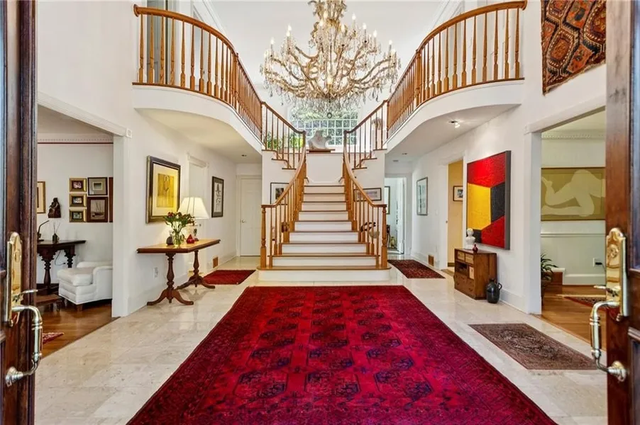 An exceptional opportunity to enjoy privacy and sophistication inside the perimeter! Tucked away on a serene, wooded acre+ lot, this distinctive residence was designed for the buyer who values individuality over "cookie cutter." A dramatic two-story marble foyer with a sweeping double staircase sets a glamorous tone from the moment you enter. Beautifully maintained and thoughtfully updated, the home features generous entertaining spaces including a large kitchen with a butcher-block island open to the family room, screened porch, and expansive deck overlooking the sparkling pool. Walls of windows and French doors flood the home with natural light and create a seamless connection to the lush outdoor setting. The flexible floor plan easily accommodates multi-generational living with three finished levels and an elevator. Upstairs, two bedrooms were combined to create a luxurious primary su...