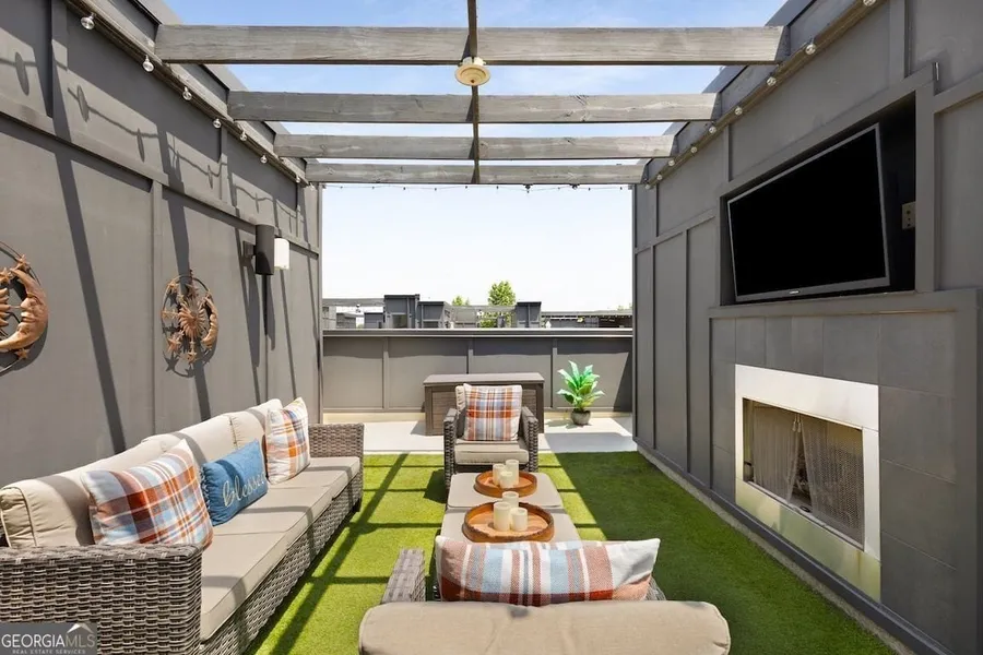 Newer Brownstone with Private Rooftop located in charming Chelsea Westside. Enjoy summer 2026 by the pool, bocce ball court, and Chelsea's fenced-in dog park. Seconds to Westside shops and restaurants including Star Provisions Market and Cafe, Chattahoochee Food Works, Top Golf, Beltline Access, and Westside Reservoir's 35-acres of paths, trails and meadows. Adjacent to Atlanta Pickleball Center hosting 10 courts, and 2 blocks from Pickleball Club of Ga hosting 33 courts. Residence 1300 features exquisite upgrades + a new EV charger in the attached garage. The first level offers a private bedroom with an ensuite bathroom great for roommates. 2nd level includes a chef's kitchen complete with an oversized island, quartz countertops, ample seating, custom cabinetry, pantry, and stainless steel appliances. Open concept leads into the dining area and spacious living room with balcony. 3rd floor level hosts the luxurious primary suite, featuring a wall of custom drawers and cabinets for storage, grand walk-in closet, and a modern ensuite bathroom with a double vanity and walk-in shower. The 3rd floor flex room can be used as a 3rd bedroom, home office/gym/other. Final staircase leads to the 4th level roof top. The entry area to the rooftop houses a wet bar and wine fridge. Relax, entertain, and enjoy lovely sunsets on the 500 sq ft rooftop featuring a pergola, gas fireplace, custom TV enclave, and eating area. All appliances, stackable washer/dryer, rooftop furniture, and rooftop TV included. 1300's private, oversized garage holds one car garage and tons of storage space on either side. Additional parking surrounding the complex. Tenant pays all utilities. *Applicant requirements: Minimum 680 Credit Score, Monthly Income 2.5x Monthly Rent + Employment Verification, Criminal Background Check, Rental History Screening. 1st month's rent + deposit due at signing.