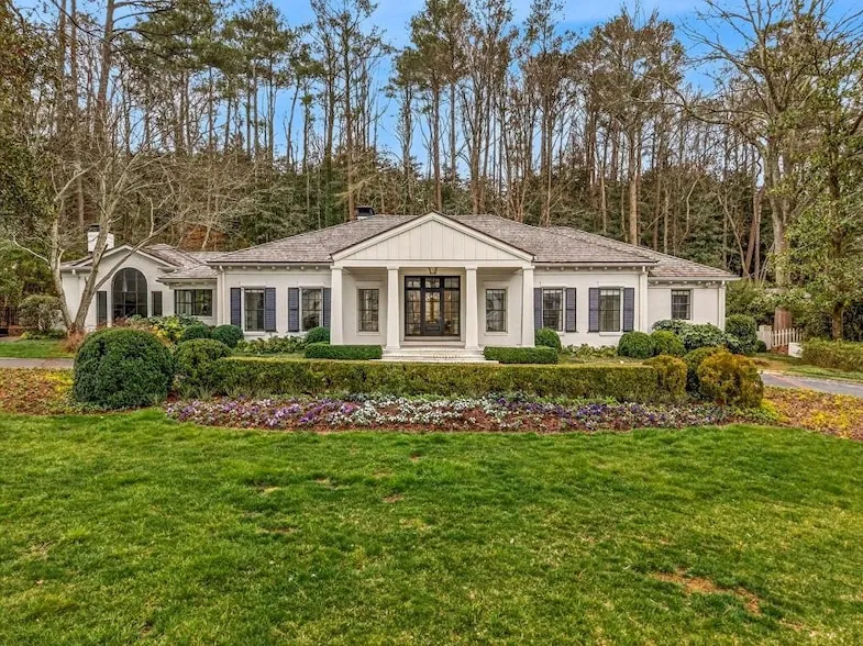 Nestled on one of the most coveted streets in highly sought-after Tuxedo Park, this beautifully renovated ranch offers the perfect blend of timeless elegance and modern luxury on nearly 1.5 private acres. Designed for both everyday living and exceptional entertaining, the home features soaring 10-foot ceilings, striking iron windows and doors, and exquisite finishes throughout. A gracious formal living room and elegant formal dining room provide refined spaces for hosting and gathering. The stunning chef's kitchen is a true showpiece, complete with dual oversized islands, premium appliances, and seamless flow into the light-filled family room with vaulted ceilings and a statement fireplace. The spacious owner's suite on the main level serves as a serene retreat, featuring dual vanities, large walk-in closets, and a spa-inspired bath. Three additional bedrooms each offer their own en suite bath. The terrace level expands the living space with a generous playroom, wine cellar, half bath, kitchenette, and an additional bedroom with a full bath ideal for guests, an au pair, or extended stays. Step outside to a walk-out backyard designed for year-round enjoyment. The covered patio with fireplace overlooks a turf lawn, creating the perfect setting for gatherings or quiet evenings at home. A three-car garage completes this exceptional offering. An extraordinary opportunity to own a turnkey estate in one of Atlanta's most prestigious neighborhoods.