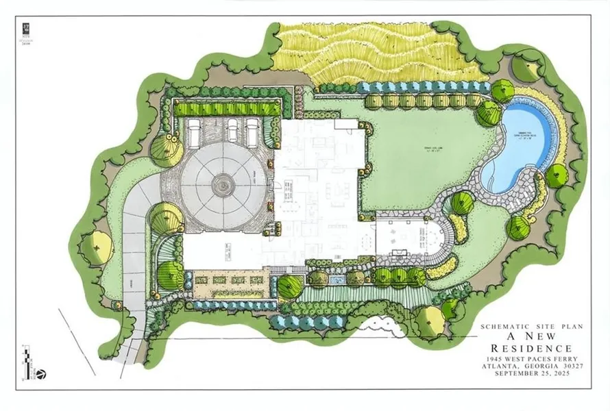 Truly remarkable 3-acre estate lot in the heart of the Paces Neighborhood is one of the finest lots I have seen for a buyer looking for the ultimate private setting! Lot is cleared, graded, fully permitted with all sitework finished and ready for your vision. Custom home plans designed specifically for this lot are completed and included. Rare opportunity to hit the ground running on Day 1! Truly Special Setting - Nestled near W Paces Ferry Rd as it approaches the Chattahoochee River, the lot sits on a private road shared by 4 homes. Homesite is positioned 600+ ft from the road-the hilltop setting ensures complete privacy and security. The Paces Neighborhood features beautiful homes on large lots, private security, and is minutes from the finest private schools, Buckhead Village, Vinings, Midtown and I-75. Land Plus has designed a spectacular site that includes a large flat backyard that connects seamlessly with the daylight terrace level as well as the main floor stone terrace. A "Ritz-Carlton-style" freeform pool mimics the shape of the surrounding hillsides. The front motorcourt includes a 4 car garage and generous parking for an added 6+ cars. Home Plans - The envisioned home is an elegant estate perfectly scaled for both everyday comfort and grand entertaining. 8400 sq ft of living area on the main and upper floors, plus a full daylight terrace level that allows expansion to over 12,000 square feet if desired. The timeless American architecture features a stone facade, copper gutters, and a slate roof-classic Buckhead elegance that never goes out of style. The main level plans feature 11-ft ceilings, a luxurious primary suite with dual dressing rooms, chef's kitchen with multiple pantries, library, and seamless flow to outdoor living spaces. The upper level has 4 additional bedroom suites plus a playroom. The terrace level is designed as a complete entertainment hub with rec room, family room, game room with bar, gym, and guest suite. Multiple outdoor spaces-including a rear covered patio with fireplace and pool area-embrace the property's natural beauty. You can begin construction immediately with these existing plans or adapt them to create exactly what you envision.