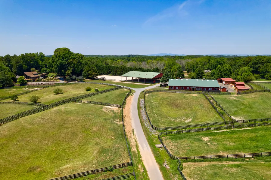 Whoa!! Price Reduction!! Location, location, location! We are proud to showcase this outstanding Equestrian Facility on 22+/- acres of pure bliss. Located in Alpharetta with Cherokee taxes, the Morton barn features 26 custom matted stalls, two tack rooms, two hot/cold wash racks, four outdoor wash racks, office/lounge, bathroom, and shavings/hay storage. Covered riding arena (100x125) is adjacent to an outdoor arena (115x200) by Jack Pollard, both arenas feature all-weather footing. Nine four-board fenced/cross fenced paddocks. Round pen, hacking trails, multiple out buildings for storage and equipment. And so that you may comfortably reside on your new equestrian farm, there is a gorgeous cedar A-frame home featuring an amazing wrap around porch. It is perched among the beautiful, picturesque gardens and pool with pastoral views. Completely renovated in 2017, the Lindal cedar post and beam chalet home boasts an open concept floorplan with Master on main. Updated kitchen features Stainless Steel appliances and shiplap throughout, open to living and dining and stunning views of the property through the soaring windows. Hardwoods throughout have been recently refinished, and fresh paint on every surface! Main floor features on additional bedroom and full bath. Head down to the terrace level for access to the pool, gardens, an additional bedroom, fireplace, custom bar and entertainment area. Pool house and Yoga studio or flex space, firepits, and it comes with a tree swing! This property truly has it all! Welcome home!