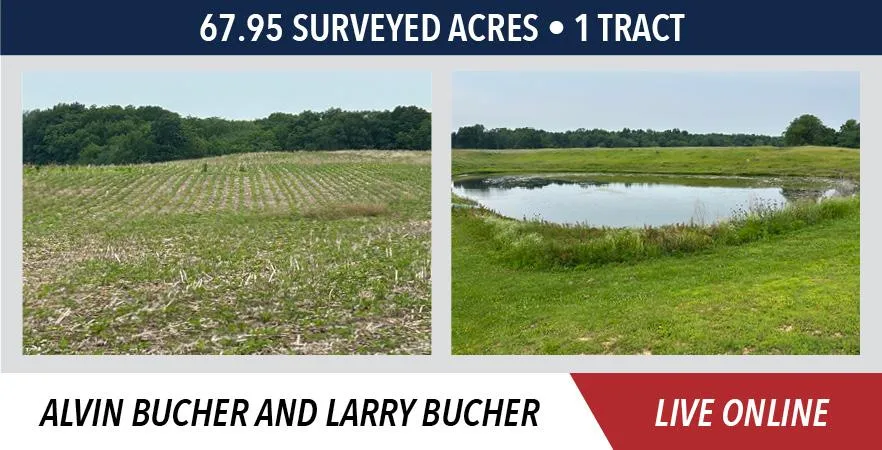The Bucher farm will be sold on a price per acre basis, based on 67.95 surveyed acres.