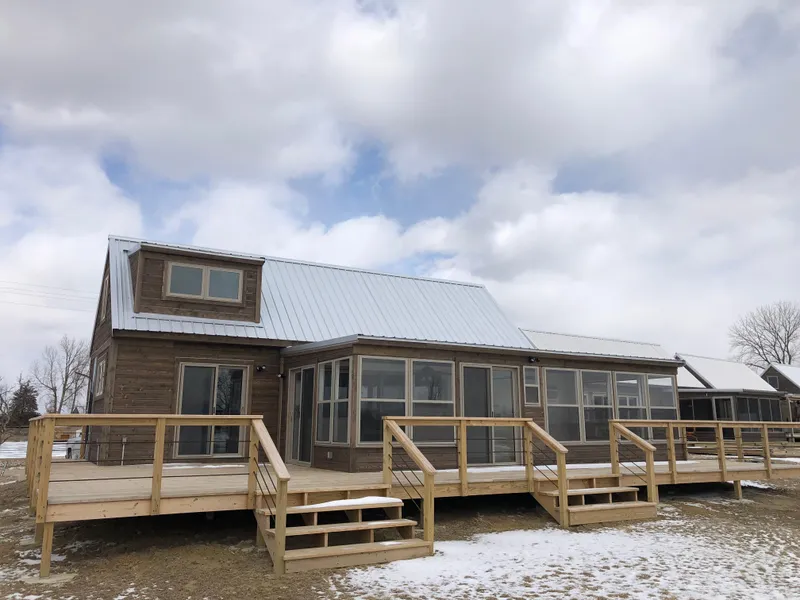 Lake Front Cabin For Sale at Giant Goose Ranch in Fulton County, Illinois. This is a furnished private cabin on Swimming Lake at the Giant Goose Ranch in Canton, IL. The Giant Goose Ranch is a gated 840 acre family outdoor recreation property with 52 lakes and ponds, miles of trails to explore, a 500' swimming beach, several pavilions, and a convenience store. Nature abounds with Ducks, Geese, Pheasants, Quail, Rabbits, Deer, Minks, Songbirds, Chickens, Horses, and of course lots of fish right at your fingertips on this amazing property.