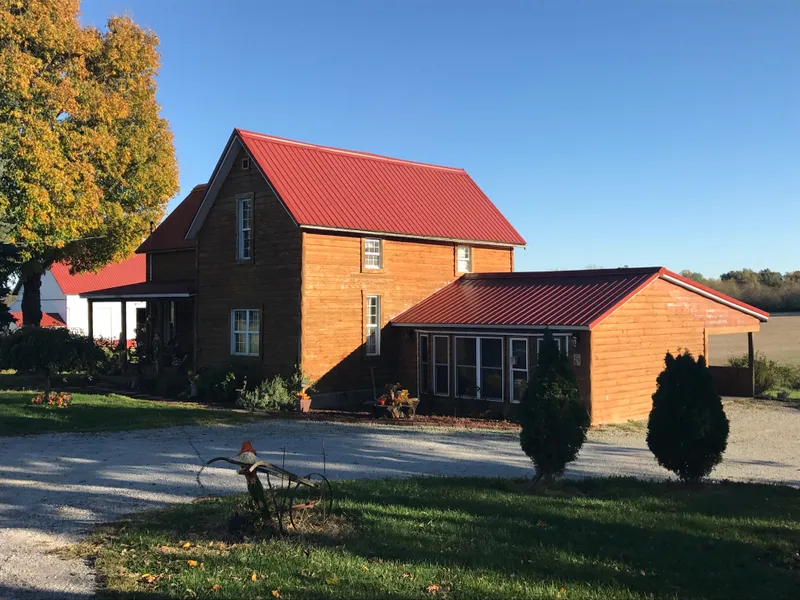 Log Cabin Style home situated on 3.22 Acres featuring 2-3 bedrooms, 1 bath, 2 fireplaces and 3 outbuildings. Home has hardwood floors throughout the downstairs.