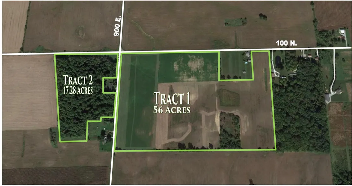 73 acres with 53.69 acres being tillable. This property will be offered in 2 tracts. Absolute Auction, property sells regardless of price!