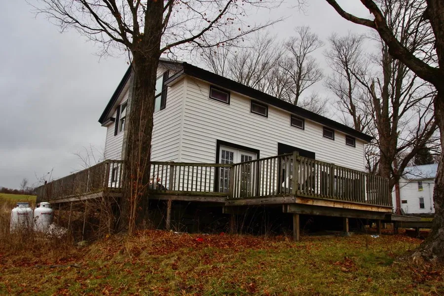 The home is 2188ft2, 2 centuries old, and was the subject of an extensive remodeling 10-15 years ago. As the owners plans changed, the remodeling was never completely finished. But it is perfectly livable as it is. Floors were leveled and walls were studded to 6 thick. Nearly everything was sheet rocked and super well insulated, with new windows and doors. A very large wrap-around deck was built, some new floors installed (Southern Yellow Pine planks - very attractive), and there is a new stairway and rails. And a completely new bath installed (the shower was plumbed but not finished). Not to worry, there is a full bath downstairs. The home was largely re-plumbed and re-wired with a new entrance and a new hot air furnace. And the old roof and siding were replaced with enameled steel and vinyl, respectively.