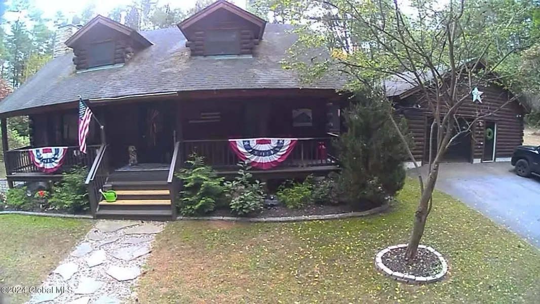 Experience the charm of Adirondack living with this 3-to-5-bedroom log home on a secluded 1.3-acre lot. This retreat combines rustic elegance with modern comforts, featuring 3 bedrooms (plus 2 optional in the finished basement), 2 bathrooms, a skylighted main bedroom with a walk-in closet, and a modern kitchen with granite countertops. Enjoy a game room, bar/garage/workout space, and a year-old 28-ft radiant pool. Outdoor highlights include a fenced backyard, tool shed, and large deck. Just 5 minutes to Great Sacandaga Lake, 35 minutes to Saratoga, and in Mayfield School District, it's move-in ready with AirBnB potential. Don't miss this gem!