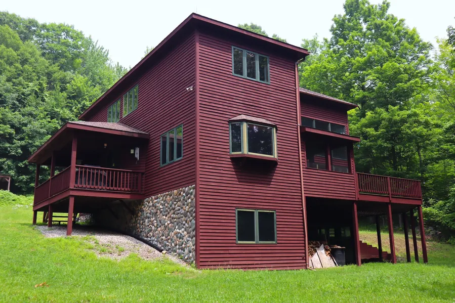 Custom Adirondack home with complete privacy, a pond, trails, views, excellent hunting and bordering the 40,527-acre Shaker Mountain Wild Forest. The 2,896sq.’ Adirondack style home features custom features throughout and with 4 bedrooms and 2.5 baths, dining room, large kitchen, 3 season room, large deck and a great room with a 2-story custom fireplace. The large covered front porch provides the perfect setting to enjoy your morning coffee while you sit and take in the spectacular views of the Great Sacandaga Lake. The views can very easily be expanded with some light cutting. The front door opens up to a spacious foyer with a half bath. The open floor plan on the first floor is warm, welcoming and spacious with rustic style box beams accenting the knotty pine ceilings throughout. The kitchen provides plenty of room for cooking and preparing meals along with space for seating at the large bar. Newer fridge and dishwasher. Just off the kitchen is a large dining room that features a wood stove which provides extra warmth during the colder months. Step outside from the dining room and into the screened in 3-season room where you can listen to the sounds of nature while reading a book or enjoying an afternoon nap. Beyond the 3-season room is a massive deck which can also be accessed from the great room. The two-story river stone fireplace and rustic mantle is the centerpiece of the massive great room with its towering cathedral ceiling. Large windows stretching out to the ceiling on the second floor provide incredible light and views of the outdoors. The first-floor master suite includes a walk in closet and large master bath with double sink, shower and a soaking tub. The laundry room on the first floor features a wash sink and space to dry clothes as well as a laundry chute from the second floor. At the top of the stairs on the second floor is a large loft open to the great room below and the perfect setting for a reading nook or family space. Three spacious bedrooms and another large full bath make up the second floor. The house features a partially finished walkout basement that is open and bright with a fireplace and plenty of space for an additional bedroom or the ultimate man cave or family room. The mechanical room includes two 500-gallon oil tanks. The oil furnace is set up as a parallel system with an adjacent wood burning furnace that is easily engaged with a few valves. There is a detached 2 stall garage with a storage room above that could be converted to a guest space or home office. This mountain top retreat gives new definition to complete privacy where there is not a single neighbor to be seen or heard. Hunters take noticequality cover and browse provide excellent wildlife habitat making this a dream location for deer, turkey and bear. Several mature bucks have been taken and there is heavy sign throughout the property showing consistent use. The terrain on the property runs uphill from the start of the driveway to the north. Enjoy hiking, ATV’s, snowmobiles, or horseback riding on the trails throughout that property. The southeast corner of the property features a 1 acre clearing that is the perfect location for a garden, pasture or a food plot for hunting. Halfway up the driveway to the house is a small pond which can be stocked with fish and the perfect setting for some backyard pond hockey in the winter. The back of the property borders the 40,527-acre Shaker Mountain Wild Forest which is the southernmost unit of the Adirondack Forest Preserve where you can expand your enjoyment of the outdoors. There are numerous ponds and lakes along with miles of trails for snowmobiling, hiking and horseback riding. The property is entirely wooded consisting of a mix of hard and softwoods. It is currently enrolled in the NYS 480a Forestry Program which provides a significant reduction in the annual taxes. The forestry plan has been very carefully conducted with select harvests by a qualified logger. The forestry plan will generate significant income with another harvest within the next few years. Past timber harvests have improved the quality of wildlife habitat by opening up the canopy and encouraging early successional growth. Privacy, acreage, a pond and a custom Adirondack home make this an incredibly unique property where you can get away from it all and enjoy the outdoors and everything it has to offer. Located at the end of a quiet country road just minutes from Gloversville and all amenities is this unique property. Call the listing agent today to set up an appointment.