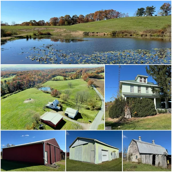 BEAUTIFUL 20+-ACRE FARMETTE for PUBLIC AUCTION at 2923 Davis Ln, Hustontown, PA 17229 on December 6, 2024 at 3PM. Fulton County farmette w/ POND, fenced pastures & AMAZING VIEWS just 1HR25MIN TO LANCASTER CO! Farmhouse has 5 BR, 2 bath, DR+ formal DR, LR, HW floors, attic, & basement. OUTBUILDINGS: (2) Pole buildings w/ large sliding doors, wagon shed, stanchion barn w/ milkhouse, carport, utility sheds & much more!