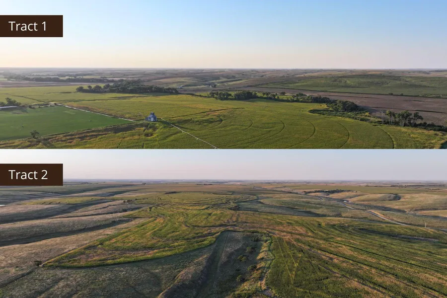 Tract 1, located on the south edge of Wilsonville, consists of 81.3 certified irrigated acres (per NRD), along with 78.7 +/- dryland crop acres consisting of well laying Hobbs-McCook Silt Loam and Hord Silt Loam soils. This tract is watered by a 2004 7-tower Reinke center pivot system, is located in the Lower Republican Natural Resource District, and has a water allocation of 45 inches for a 5-year period. For the 2023-2027 period, as of October 1st, 2024, 35.6 inches remain (per NRD). There is also an old elevator on the property.