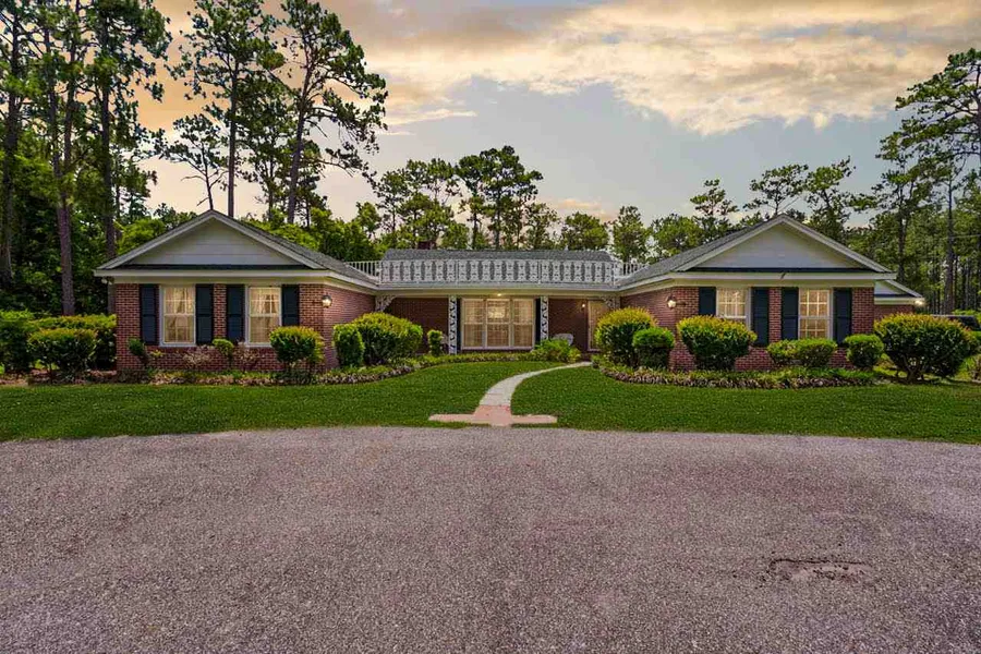 MULTIPLE OFFER SITUATION, ACCEPTING HIGHEST AND BEST BY 7/13/2020 at 11:59 PM. - Sprawling pool home on 6 acres just 1.5 miles from I-10. Four bed/2 bath in main part of home. Additional bed and bath has separate entrance and is off the enclosed porch. Spacious master suite with original parquet flooring, cozy family room with fireplace and plenty of space to hang-out on the back porch looking out to the pool. The property is fenced and gated and is surrounded by woods. 3-car carport and multiple outbuildings to store all of your toys. Adorable playhouse for the kids. Perfect home to host your next pool party.