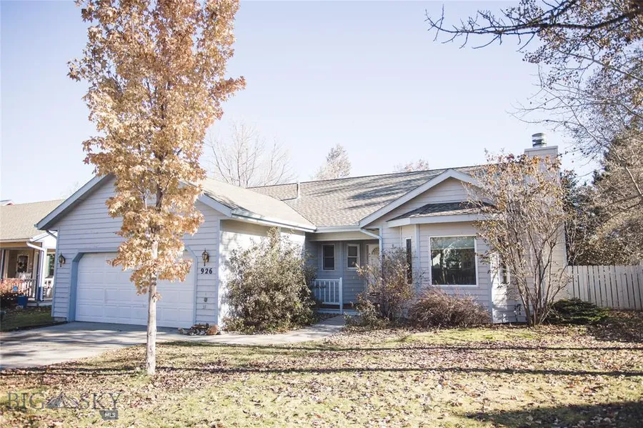 Spacious single-level home in sought-after Bozeman neighborhood. Conveniently located near Emily Dickinson Elementary, shopping, and dining. Elegant vaulted ceilings in living and dining area, with beautiful tiled gas fireplace. Functional floor plan includes three bedrooms and two full baths, as well as additional living area with wood-burning fireplace. Private back patio to enjoy the large, fenced backyard with mature landscaping and underground sprinklers.