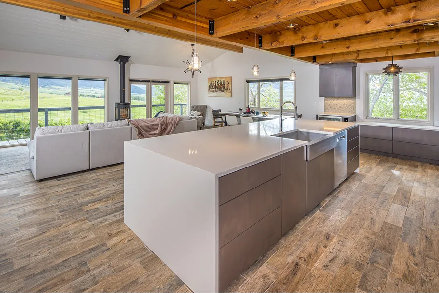 Impeccable tri-level home on 15+- acres with expansive views of the Spanish Peaks. Recently remodeled, this contemporary masterpiece boasts world class views from all angles while also retaining a private, park like setting perched above Gallatin Gateway. A huge, modern entertainer's kitchen opens to a large living room and a main floor master. Upstairs, you'll find a private lofted guest suite with more of that mountain feel. Downstairs, the walk-out lower level boasts a second en-suite master and a family room with an unbelievable amount of storage. Fully fenced with numerous pastures and an enchanted lower parcel featuring a year-round spring creek and a variety of building sites, this turn-key home is just 30 miles from Big Sky and less than 15 miles from Bozeman. Offered fully furnished, this is a truly world class destination property.
