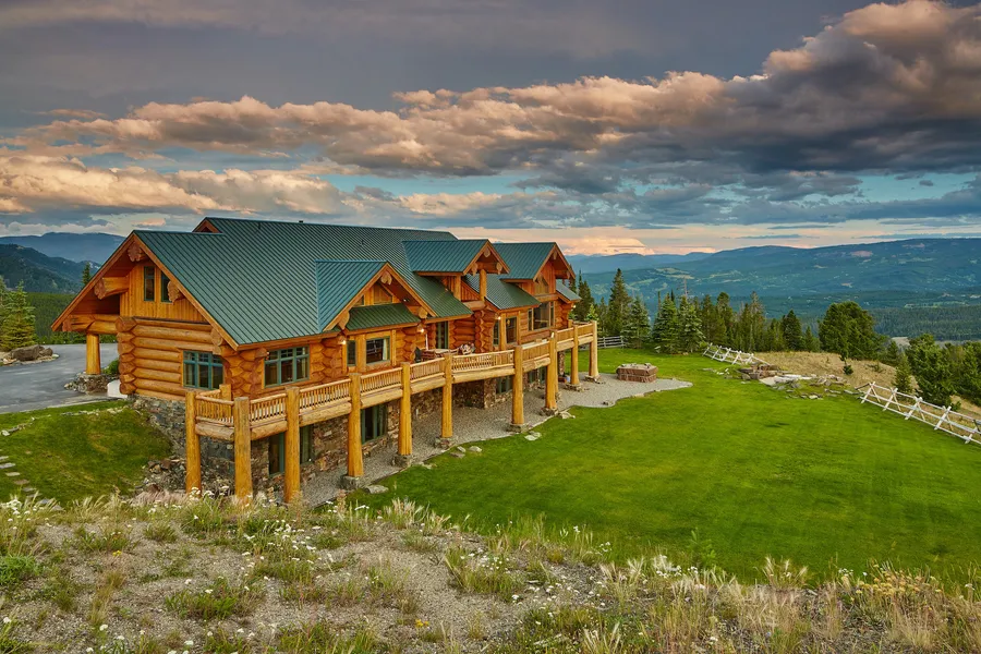 Peace, privacy & expansive views of 3 majestic mountain ranges greet you as you reach the home compound. The exquisite custom log home was built of Canadian red cedar & native Montana rock. The great room is expansive & welcoming with a massive rock fireplace that soars 2 stories. The gourmet kitchen opens to the Spanish Peaks. The spacious Master suite frames Lone Peak at each window. A huge log deck spans the full length of the main house & is perfect for entertaining and wildlife viewing. An office and mud room complete the main floor. There are four en-suite guest rooms, a family room & laundry on the lower level. The loft includes an office, bunk room, playroom, gym and storage. The detached 4 car garage has a Guest/Caretaker apartment. This property will take your breath away with its wind swept meadows & herds of elk moving in the shadows at the edge of the forest. THE PROPERTY IS...