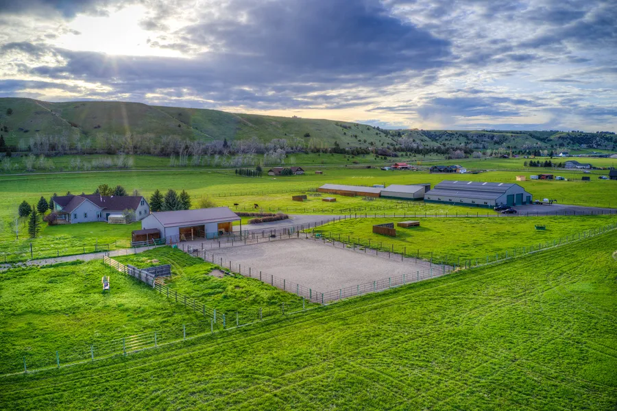 This fantastic property features a vast array of potential and options. Several structures are strategically situated on the 24.87 acres that comes with ditch water rights. The main home is over 2,700 SF with vaulted ceilings, radiant in-floor heat, 3 beds, attached 2 car garage & paved driveway. The detached garage contains a small studio apartment and is next to the outdoor equestrian riding arena. The massive 8,000 SF shop building is divided into 6,000 SF of partially heated shop space and a 2,000 SF apartment with 2 bedrooms. There is also a large hay barn, livestock barn, loafing shed; the property has continuous steel 5 rail fencing. Located in Gallatin Gateway, just north of the famous Flying D Ranch, there are minimal covenants and no zoning. Fish on the Gallatin River, ski at Big Sky, or shop on Bozeman's Main Street: it's all close by. Owner currently rents all buildings. The property could be used for rental income, family compound, horse facility, or small business.