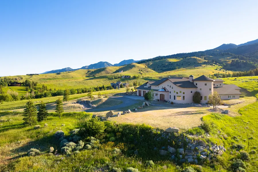 Custom, Montana estate on over 20 rolling acres overlooking Bozeman and the surrounding valley. Boasting some of the most incredible views possible in the area, the compound is nestled against the majestic Bridger Mountains. This sprawling oasis offers over 8000 square feet of living space, ample outdoor retreats to soak in the surrounding landscape, and a quick 10 minute drive to Downtown Bozeman. Dramatic vaulted ceilings, custom Tulikivi soapstone fireplace/seating area, and a well-appointed chef's kitchen. Enjoy the oversized master suite with a massive walk in closet, as well as 3 guest bedrooms on the main level. Upstairs, behold a guest suite including full kitchen, bathroom, and private balcony, as well an office, entertainment area and additional guest room. Relish in the feeling of perfect solitude atop the rolling hills with your protected views, knowing all the amenities and recreation opportunities of Bozeman are just minutes away.