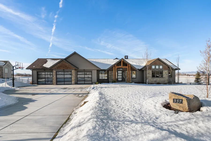 A truly magnificent custom home in one of Bozeman's most sought-after and rarely available neighborhoods, Westlake Park. This 5 bedroom, 4.5 bath, 6000sf+ home sits on just over an acre of landscaped, park like property and offers 360 degree views of the surrounding mountain ranges. The home sits across two floors; as you enter, you're welcomed by an open concept living and dining space with vaulted and hewn-beam exposed ceilings and a Thermador-equipped chef's kitchen. A main floor master suite and second guest bedroom or office sit on one side, while the separate laundry and mud room are just off the three-plus car garage. Downstairs, three more bedrooms, a family room, theater room and additional storage space add to the expansiveness of this home. With high-ceilings, plenty of light, and high-end finishes, this is the ultimate modern mountain retreat.
