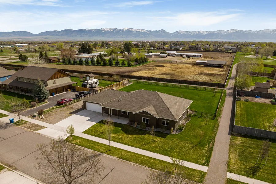 Single level living on almost a half acre lot with commanding Bridger views! This well-appointed home in Belgrade's sought-after Cobblestone subdivision boasts a park right out your front door and is complete with a spacious living area, vaulted ceilings, stainless steel kitchen appliances, and an open concept design. The main floor master features an en-suite bathroom with plenty of storage, his and hers master closets, and your own private entrance to the back yard. Step onto the concrete patio right off your dining area to soak in the stunning mountain views from the lovingly landscaped, expansive yard. Behold an in-ground, rock fire pit area, raised garden beds, and direct access to the community trail system. There is also extra parking on the side of the house for an RV or more recreational toys. A must see!