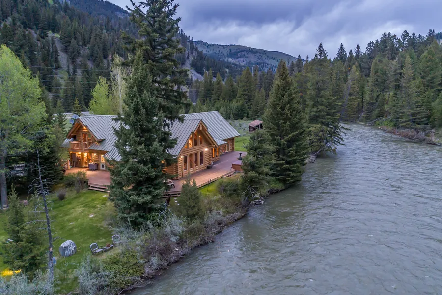 Welcome to your dream Gallatin River retreat nestled in the heart of Big Sky, Montana! This stunning log cabin, meticulously remodeled in a mountain modern design, offers the perfect blend of rustic charm and contemporary luxury. Situated on over 990 feet of pristine Gallatin River frontage, this legacy estate property provides an unparalleled opportunity to indulge in the tranquility of nature while enjoying world-class fishing right in your backyard. This brand new, remodeled home features an en/suite master and a second en/suite bedroom. In the loft is an open air studio with 2 built in queen beds, shower and water closet. Above the detached 2 car garage is a 650 sq ft, 1 bedroom/1 bath apartment/ADU with amazing riverfront views off the deck. Step inside the main home to discover a seamless blend of traditional craftsmanship and modern elegance. The interior boasts vaulted ceilings, ...