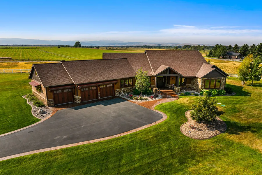 Welcome to the custom-built Bozeman retreat you have been waiting for! With meticulous attention to detail, this single level retreat epitomizes both elegance and comfort, set on a sprawling one-acre lot surrounded by designated open space with commanding mountain views in one of Bozeman's most premier subdivisions, Westlake Park. Inside, discover the warmth of real wood flooring that leads you through an open and inviting floor plan. A soaring, vaulted ceiling with barn wood detailing and a commanding stone fireplace flank the great room, accentuated by ample windows providing both natural light and unmatched views. The gourmet kitchen is a chef's delight, featuring exquisite granite countertops, a rich walnut bar top, high end appliances including a double wall oven with warming drawer, and under-cabinet lighting that highlights the superior craftsmanship. Main level living is a breeze with a spacious master retreat, complete with his- and hers- walk-in closets, spa-like en suite bathroom, and more striking mountain views. Radiant in-floor heating ensures cozy warmth throughout the year, while central A/C keeps temperatures ideal throughout the summer months. The grandeur of this home extends beyond its walls. Enjoy breathtaking mountain views from virtually every angle, and entertain guests effortlessly on the expansive back patio. This outdoor oasis is designed for both relaxation and celebration, complete with a built-in fireplace, fire pit, gas grill, and integrated outdoor speakers. Perfectly positioned just 15 minutes from downtown Bozeman, this property offers the tranquility of country living with the convenience of city access. With its impeccable construction and ease of single-level living, this home promises both luxury and practicality.