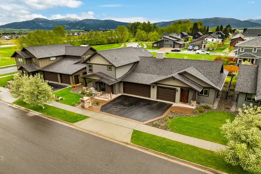 Welcome to this beautifully crafted residence located in the desirable Southbridge subdivision of Bozeman. Boasting 3,195 sq ft of living space, including a fully equipped 1-bedroom ADU, this residence offers flexibility, style, and modern comfort in one of Montana's most sought-after communities. This two-level Craftsman-style home showcases quality finishes throughout, including engineered wood flooring, vaulted ceilings, and sleek quartz countertops. The spacious main level features an open-concept kitchen, dining, and living area, plus a luxurious primary suite with a full bathroom, walk-in closet, and access to a covered patio. Upstairs, you'll find three generously sized bedrooms and a full bath, ideal for family or guests. The attached guest quarters offer private living space with a bedroom, full bath, kitchen, laundry, and a separate one-car garage—great for extended stays or re...